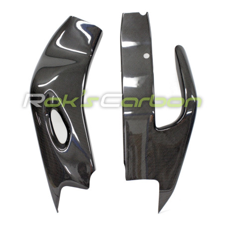 Die Carbonfaser-Abdeckungen bestehen aus 160 g/m² Leinwand-Carbongewebe mit hochwertigem Epoxidharzsystem und sind mit 170 g/m² Leinwand-Carbon/Kevlar-Hybridgewebe verstärkt.