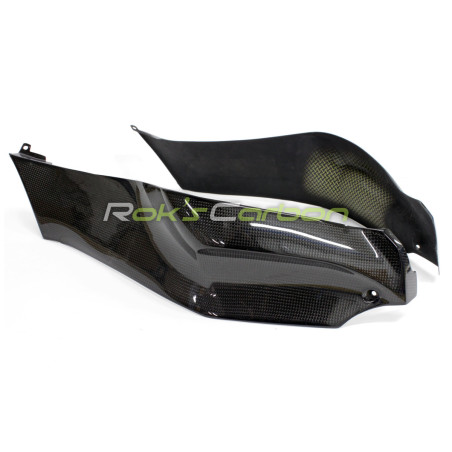 Die Carbonfaser-Teile bestehen aus 160 g/m² Leinwand-Carbongewebe mit hochwertigem Epoxidharzsystem und sind an den Befestigungsbereichen mit Carbongewebe verstärkt.