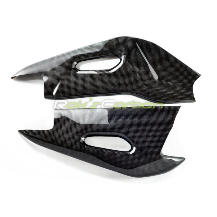 Die Carbonfaser-Abdeckungen bestehen aus 160 g/m² Leinwand-Carbongewebe mit hochwertigem Epoxidharzsystem und sind mit 170 g/m² Leinwand-Carbon/Kevlar-Hybridgewebe verstärkt.