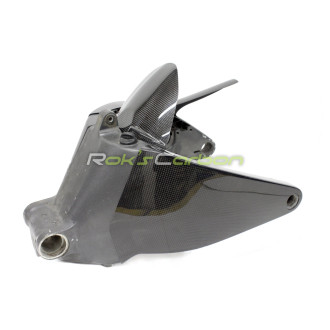 Las piezas de fibra de carbono están fabricadas con tejido de carbono plain weave de 160 g/m² con un sistema de resina epoxi de calidad, reforzadas en las zonas de montaje con tejido de carbono.