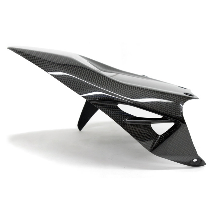 Las piezas de fibra de carbono están fabricadas con tejido de carbono plain weave de 160 g/m² con un sistema de resina epoxi de calidad, reforzadas en las zonas de montaje con tejido de carbono.