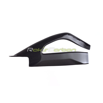 Las cubiertas de fibra de carbono están fabricadas con tejido de carbono plain weave de 160 g/m² con un sistema de resina epoxi de calidad, reforzadas con tejido híbrido carbono/kevlar plain weave de 170 g/m².
