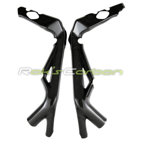 Las cubiertas de fibra de carbono están fabricadas con tejido de carbono plain weave de 160 g/m² con un sistema de resina epoxi de calidad, reforzadas con tejido híbrido carbono/kevlar plain weave de 170 g/m².