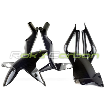 Las cubiertas de fibra de carbono están fabricadas con tejido de carbono plain weave de 160 g/m² con un sistema de resina epoxi de calidad, reforzadas con tejido híbrido carbono/kevlar plain weave de 170 g/m².