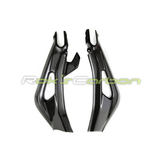 Les protections en fibre de carbone sont fabriquées en tissu carbone tissé toile 160 g/m² avec un système de résine époxy de qualité, renforcées par un tissu hybride carbone/kevlar tissé toile 170 g/m².