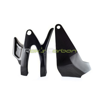 Les protections en fibre de carbone sont fabriquées en tissu carbone tissé toile 160 g/m² avec un système de résine époxy de qualité, renforcées par un tissu hybride carbone/kevlar tissé toile 170 g/m².