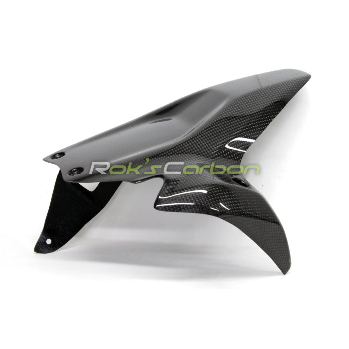 Les pièces en fibre de carbone sont fabriquées en tissu carbone tissé toile 160 g/m² avec un système de résine époxy de qualité, renforcées aux zones de fixation avec du tissu carbone.
