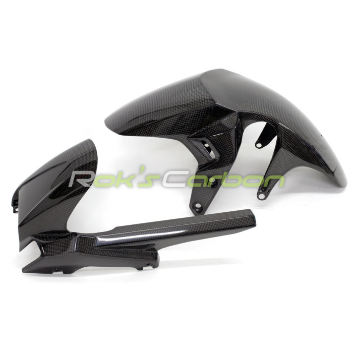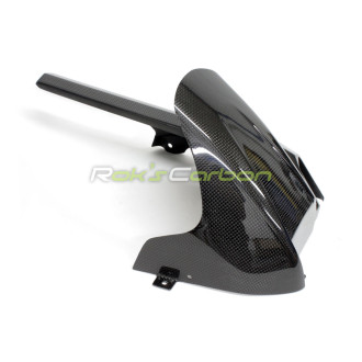 Les pièces en fibre de carbone sont fabriquées en tissu carbone tissé toile 160 g/m² avec un système de résine époxy de qualité, renforcées aux zones de fixation avec du tissu carbone.