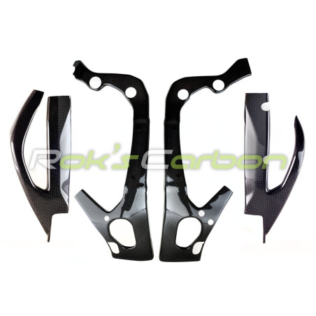 Les protections en fibre de carbone sont fabriquées en tissu carbone tissé toile 160 g/m² avec un système de résine époxy de qualité, renforcées par un tissu hybride carbone/kevlar tissé toile 170 g/m².
