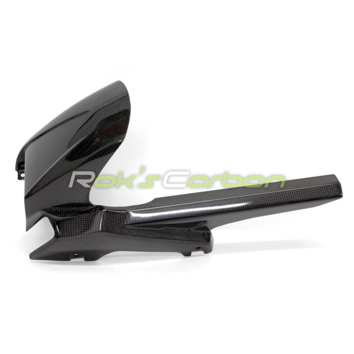 Les pièces en fibre de carbone sont fabriquées en tissu carbone tissé toile 160 g/m² avec un système de résine époxy de qualité, renforcées aux zones de fixation avec du tissu carbone.