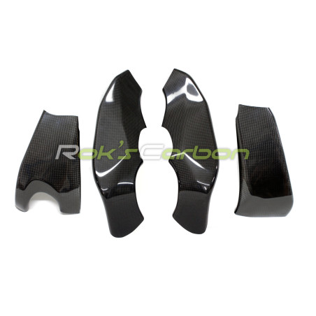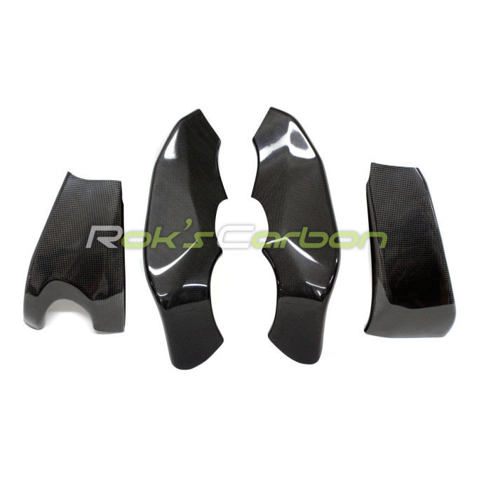 Le coperture in fibra di carbonio sono realizzate con tessuto in carbonio plain weave da 160 g/m² con un sistema di resina epossidica di qualità, rinforzate con tessuto ibrido carbonio/kevlar plain weave da 170 g/m².